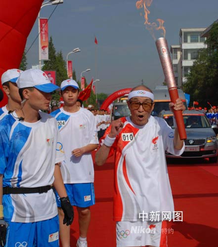 現(xiàn)年九十一歲的李智老先生是年齡最大的一位火炬手,他曾兩次與自行車隊友從大同出發(fā)到北京聲援奧運,倡導全民健身。張雷杰攝