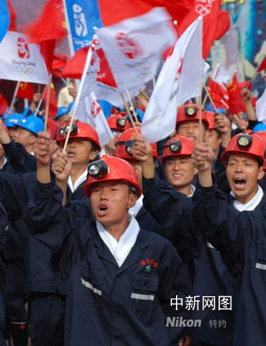 大同礦藏資源豐富,素有“煤都”之稱,是我國重要的優(yōu)質(zhì)動力煤生產(chǎn)基地。圖為煤礦工人來到火炬?zhèn)鬟f現(xiàn)場,為奧運加油喝彩。張雷杰 攝