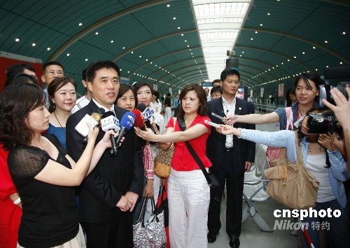 6月27日下午,臺(tái)北市長(zhǎng)郝龍斌結(jié)束在上海的訪(fǎng)問(wèn),搭乘磁浮列車(chē)赴浦東國(guó)際機(jī)場(chǎng)返臺(tái)。郝龍斌向記者表示,此次上海之行很好,相信臺(tái)北與上海一定會(huì)雙贏。中新社發(fā) 潘索菲 攝