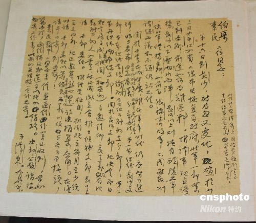這是中國國民黨黨史館館藏的一九二四年九月二十八日毛澤東寫給國民黨黨工林伯渠、彭素民的信函。中新社發(fā) 耿軍 攝