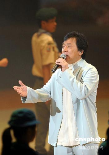 著名影星成龍在慶香港回歸十一周年文藝匯演上高唱“真心英雄”。中新社發(fā) 洪少葵 攝