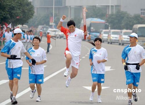 圖:楊凌火炬手傳遞時(shí)振臂歡呼