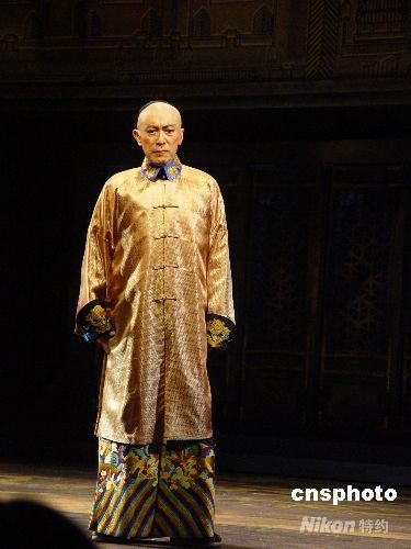 圖為在話劇中扮演光緒皇帝的香港著名舞臺劇導演毛俊輝。他上次登臺演出的就是1998年的《德齡與慈禧》,這次是十年后再度出演劇中“光緒皇帝”。中新社發(fā) 應(yīng)妮 攝