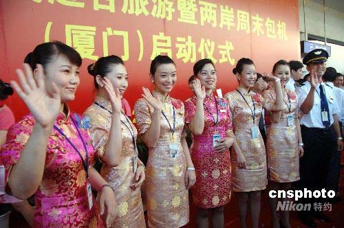 圖:廈航空乘人員著新裝服務兩岸周末包機