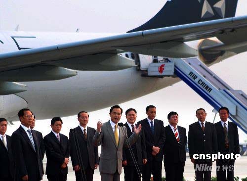 圖:北京有關(guān)人士首都機場歡送赴臺旅游團