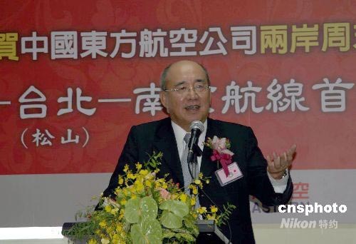 中國國民黨主席吳伯雄七月四日上午親赴臺北松山機(jī)場迎接來自南京的大陸居民赴臺旅游首發(fā)團(tuán)暨兩岸周末包機(jī)。吳伯雄在致詞時呼吁,兩岸周末包機(jī)應(yīng)該盡快實現(xiàn)日常化,并截彎取直。中新社發(fā) 徐長安 攝