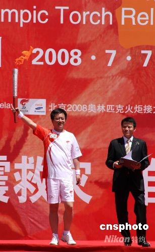 7月7日,北京奧運(yùn)火炬圓滿結(jié)束在蘭州的傳遞,中央電視臺(tái)節(jié)目主持人朱軍在自己的家鄉(xiāng)擔(dān)任最后一棒火炬手。 中新社發(fā) 周兆軍 攝