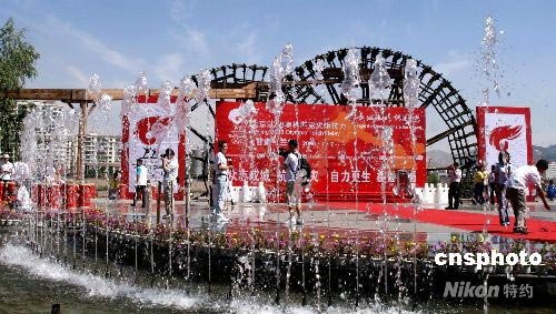 圖:奧運火炬蘭州傳遞在"水車博覽園"結(jié)束
