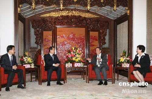 7月7日,中國國務(wù)院副總理王岐山在北京中南海紫光閣會見了由中國國務(wù)院僑務(wù)辦公室主任李海峰率領(lǐng)的“知名僑資企業(yè)家四川行”代表團(tuán)一行。中新社發(fā) 王瑤 攝