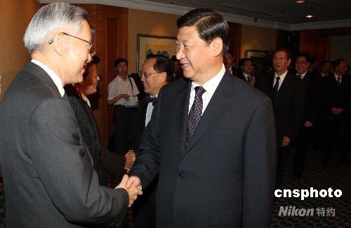 7月7日,首次訪問香港的中國(guó)國(guó)家副主席習(xí)近平在海逸酒店會(huì)見香港特區(qū)行政、立法、司法機(jī)關(guān)負(fù)責(zé)人。中新社發(fā) 任海霞 攝
