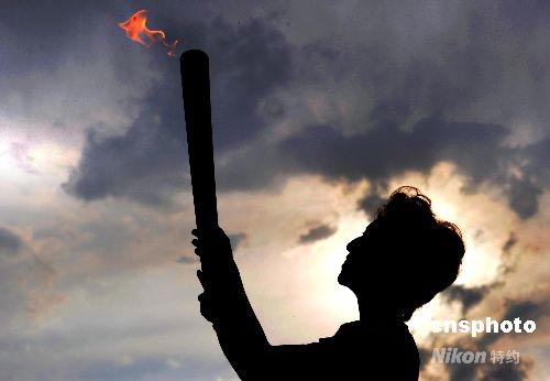7月8日,奧運(yùn)火炬在內(nèi)蒙古呼和浩特市傳遞。呼和浩特火炬手手捧“祥云”奧運(yùn)火炬進(jìn)行展示。 中新社發(fā) 廖攀 攝