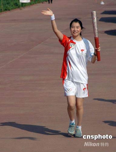 圖:香港城市大學(xué)學(xué)生詹寶傳遞奧運(yùn)火炬
