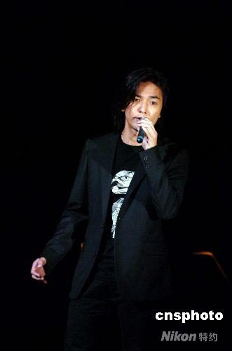 圖為著名歌星鄭伊健在義演現(xiàn)場(chǎng)演唱《風(fēng)云》。中新社發(fā) 朱沿華 攝