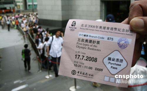 數(shù)千香港市民排隊(duì)領(lǐng)取奧運(yùn)紀(jì)念鈔票購物憑證(3)