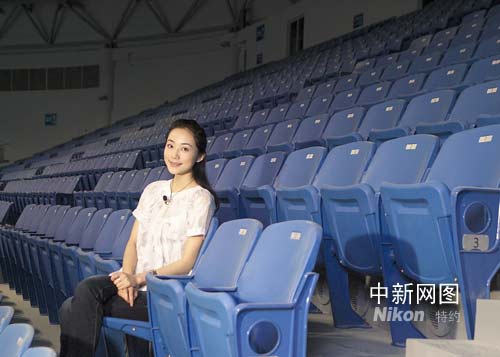 圖:影視紅星韓雪奧運(yùn)羽毛球館激情揮拍