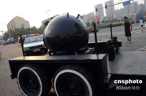 7月23日傍晚,北京警方將一批安保防恐設(shè)備運(yùn)抵奧運(yùn)會主場館區(qū)域。中新社發(fā) 陳文 攝