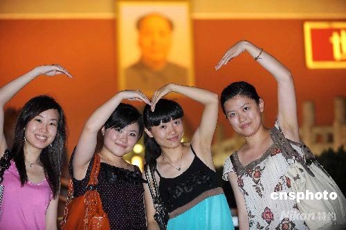 7月27日晚,游人在北京天安門廣場(chǎng)游覽。北京奧運(yùn)會(huì)開幕日益臨近,中外游客紛紛走進(jìn)北京感受奧運(yùn)氣息。 中新社發(fā) 陳文 攝