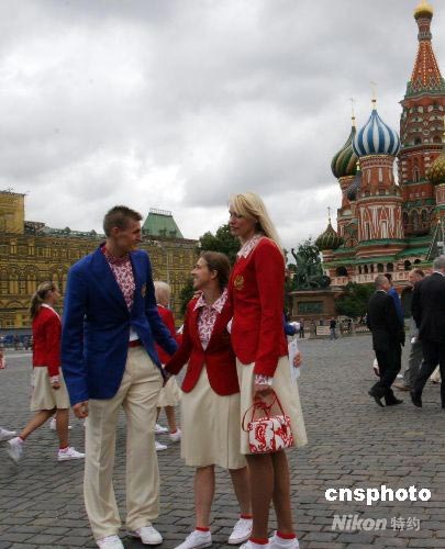 圖為基里連科和運(yùn)動(dòng)員在紅場(chǎng)合影。中新社發(fā) 田冰 攝