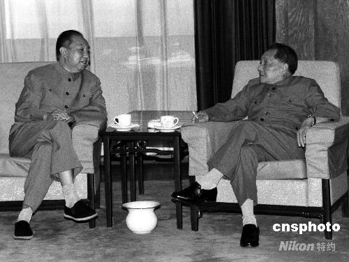 曾擔(dān)任中國共產(chǎn)黨和國家重要領(lǐng)導(dǎo)職務(wù)的華國鋒,因病醫(yī)治無效,于2008年8月20日12時52分在北京逝世,享年87歲。資料圖為1987年,鄧小平與華國鋒在出席全國人民代表大會全體會議期間在休息室交談。中新社發(fā) 呂相友 攝