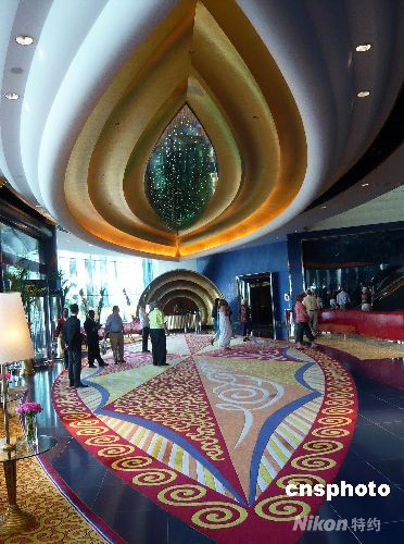 圖為帆船酒店具有阿拉伯民族傳統(tǒng)文化風(fēng)格裝飾的豪華大廳。中新社發(fā) 錢興強(qiáng) 攝
