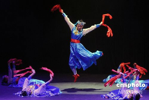 圖為加州大學洛杉磯分校的“中國民族舞蹈社”表演舞蹈“蒙古人”。中新社發(fā) 張煒 攝