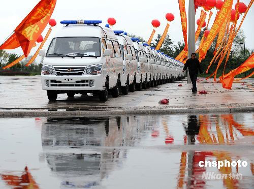 9月22日,在寧夏回族自治區(qū)成立50周年之際,中央政府向?qū)幭幕刈遄灾螀^(qū)贈送143輛救護車。這些救護車將用于寧夏基層醫(yī)療工作。中新社發(fā) 廖攀 攝