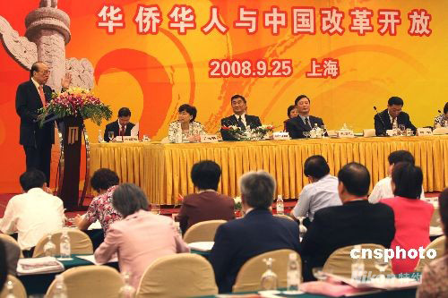 9月25日,中國僑聯主辦的“華僑華人與中國改革開放紀念大會”在上海舉行,來自20多個國家和地區(qū)的300余名僑領、華商共聚一堂,圍繞“華僑華人與中國改革開放”主題,共敘中國改革開放30年取得的偉大成果。中新社發(fā) 史利 攝