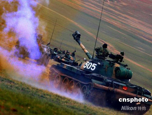 9月25日上午,中國(guó)人民解放軍“礪兵--2008”演習(xí)在塞北大漠展開。這場(chǎng)演習(xí)是一場(chǎng)在復(fù)雜地形、復(fù)雜電磁環(huán)境、作戰(zhàn)信息“背靠背”情況下,跨軍區(qū)聯(lián)合、多兵種協(xié)同、陸航空一體、實(shí)兵檢驗(yàn)性戰(zhàn)術(shù)集團(tuán)立體機(jī)動(dòng)攻防戰(zhàn)斗演習(xí)。中新社發(fā) 宋吉河 攝