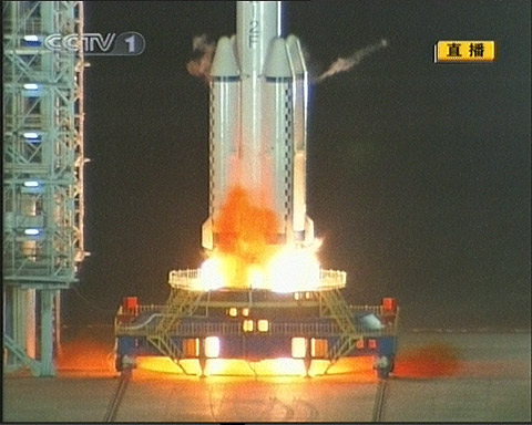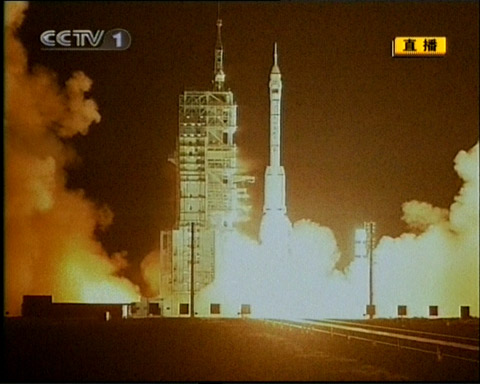 北京時(shí)間二十五日晚九時(shí)十分,中國自行研制的第三艘載人飛船神舟七號(hào),在酒泉衛(wèi)星發(fā)射中心載人航天發(fā)射場由“長征二號(hào)F”運(yùn)載火箭發(fā)射升空。