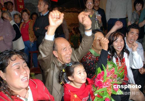 9月25日晚,在航天員景海鵬的家鄉(xiāng),家人和鄰居們在景家觀看電視直播。“成功了!成功了!我們?yōu)槟阕院!”小小的院子頓時沸騰了,鑼鼓聲、鞭炮聲、歡呼聲響徹夜空。一直下個不停的小雨也沒能阻擋家鄉(xiāng)人民的熱情。