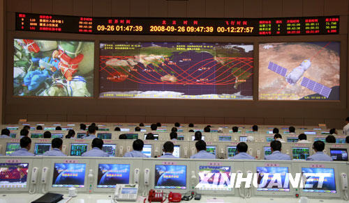 9月26日,科研人員在北京航天飛行控制中心對神舟七號進(jìn)行飛行控制。新華社記者 查春明 攝