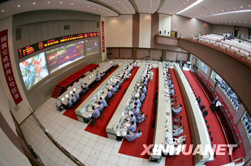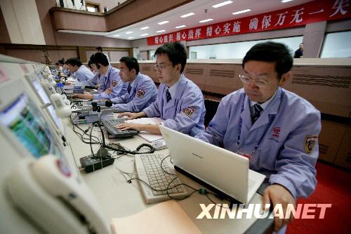 9月26日,科研人員在北京航天飛行控制中心對神舟七號進行飛行控制。新華社記者 查春明 攝
