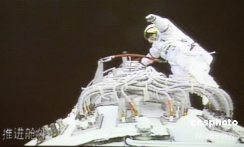 圖:神舟七號(hào)航天員翟志剛成功出艙(3)