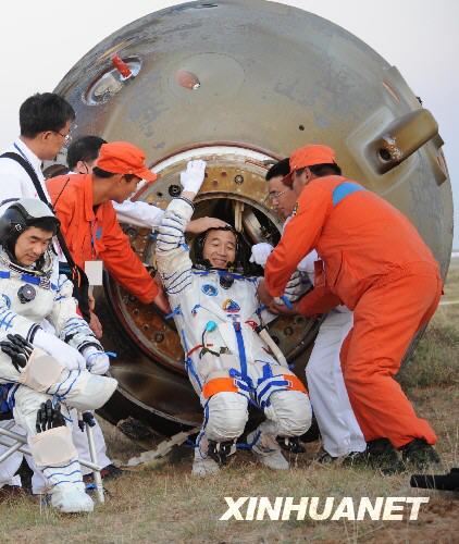 組圖:神七航天員順利出艙并接受記者采訪(2)