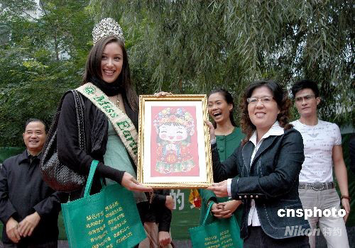 2008年10月6日下午,來(lái)自加拿大的“世界綠色環(huán)境大使”、2007“地球小姐”世界冠軍杰西卡和來(lái)自菲律賓的“世界綠色環(huán)境大使”、2006“地球小姐”季軍凱瑟琳及參加“地球小姐”世界綠色環(huán)保大賽中國(guó)總決賽的全國(guó)40位優(yōu)秀的“綠色天使”,來(lái)到南京綠色環(huán)保示范社區(qū)南湖沿河社區(qū),向社區(qū)居民宣傳環(huán)保知識(shí)并發(fā)放環(huán)保袋和無(wú)磷洗衣粉,受到社區(qū)居民的歡迎。中新社發(fā) 劉建民 攝