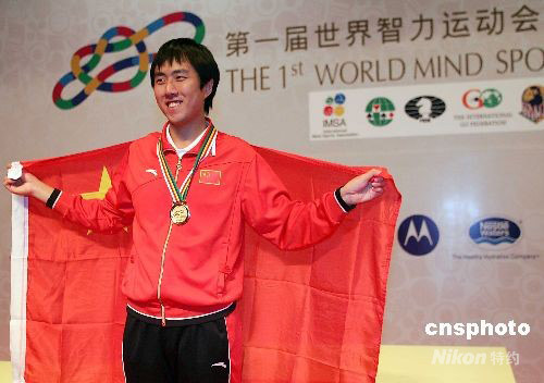 10月8日,首屆世界智力運動會國際象棋25分個人快棋賽在北京會議中心結束。中國棋手卜祥志加賽擊敗烏克蘭棋手科里波夫,獲得智運會中國首枚國象金牌。中新社發(fā) 富田 攝