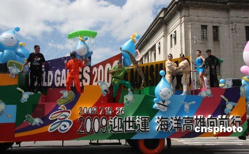 圖為臺灣高雄市布置的花車在為二00九年舉辦的世運會做宣傳。中新社發(fā) 耿軍 攝