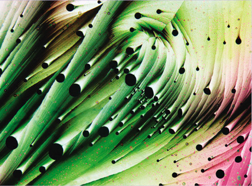 間苯二酚、亞甲基藍(lán)、硫磺的結(jié)晶混合物,約翰·哈特攝,放大13倍。拍攝地點(diǎn):美國科羅拉多州伯爾德。所用技術(shù):透射偏振光。
