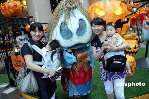 十月二十一日,香港時代廣場設置“怪異南瓜陣”迎接萬圣節(jié)到來。中新社發(fā) 洪少葵 攝