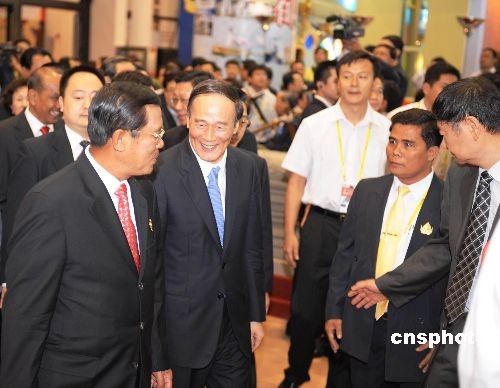 王歧山洪森共同巡視中國—東盟博覽會展館