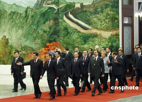 胡錦濤、溫家寶與出席亞歐首腦會(huì)議各國(guó)領(lǐng)導(dǎo)人合影(2)