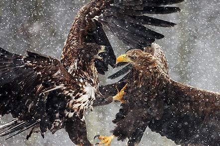 兩只鷹在打斗。