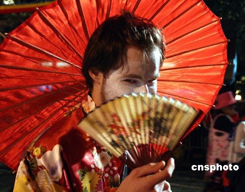 10月31日晚,第三十五屆“紐約格林威治村萬(wàn)圣節(jié)游行”隆重登場(chǎng),曼哈頓六大道人山人海,盡管面對(duì)金融風(fēng)暴,但紐約客依然“群魔亂舞”,極盡瘋狂。中新社發(fā) 彭偉祥 攝