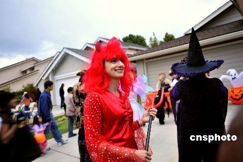 圖:美國(guó)人服裝艷麗歡度“萬圣節(jié)”