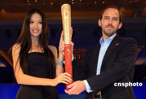 11月3日晚,一場(chǎng)預(yù)防性病艾滋病慈善拍賣(mài)晚會(huì)在上海舉行,中國(guó)“小巨人”姚明簽名的北京奧運(yùn)火炬,經(jīng)過(guò)激烈競(jìng)拍,以10萬(wàn)元人民幣被一位外籍愛(ài)心人士拍得,捐贈(zèng)給中國(guó)預(yù)防性病艾滋病基金會(huì),圖為2007年“世界小姐”張梓琳親手向愛(ài)心人士呈上姚明簽名的“奧運(yùn)火炬”。