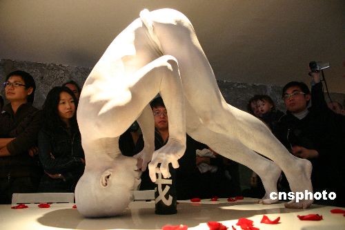 11月2日下午,馬來西亞的華裔舞者李瑞強(qiáng)在北京鼓樓東大街的一家酒吧為大家表演現(xiàn)代舞“人與神”。李瑞強(qiáng)在半露天的環(huán)境中表演個(gè)人獨(dú)舞,雖然天氣寒冷,但是他全情投入,演出忘我,使肢體動(dòng)作沖破語(yǔ)言與文化的障礙,觸動(dòng)了觀眾的心。李瑞強(qiáng)以為,舞蹈是一種活生生的生命體驗(yàn),是live art。這個(gè)舞蹈是為了引發(fā)觀眾對(duì)“人+神”主題的聯(lián)想。中新社發(fā) 郭海鵬 攝