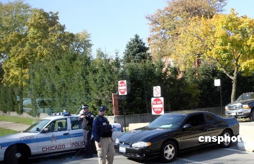 11月4日美國大選全民投票日,民主黨總統(tǒng)候選人奧巴馬位于伊利諾伊州芝加哥南部的住宅周圍安保措施十分嚴(yán)格。住宅周圍不僅有禁止通過和停車的標(biāo)志,還有警員把守。中新社發(fā) 李靜 攝