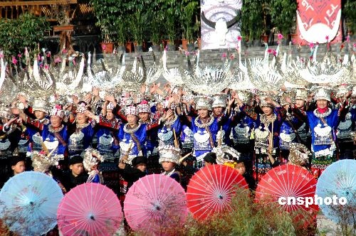 11月9日,貴州黔東南雷山縣幾千苗族同胞進(jìn)行采排,為2008年11月10日舉行的雷山苗年開(kāi)幕式作準(zhǔn)備,采排現(xiàn)場(chǎng)盛況空前。中新社發(fā) 吳興權(quán) 攝