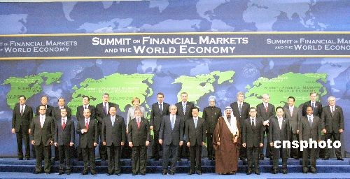二十國集團領導人金融市場和世界經濟峰會15日在美國首都華盛頓舉行,中國國家主席胡錦濤出席會議并發(fā)表重要講話,圖為各與會領導人在會前合影。中新社發(fā) 齊彬 攝