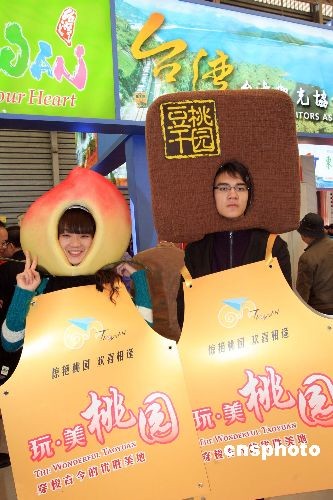 11月20日,臺灣桃園在上海“二00八中國國際旅游交易會”上,推銷特色名產(chǎn)“豆干”、“水蜜桃”,吸引上海人體驗桃園縣自然人文之美。中新社發(fā) 潘索菲 攝